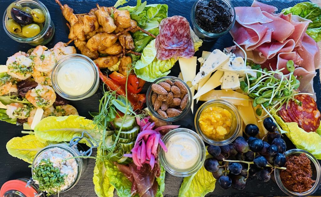 Stor skifferplanke anrettet, lige til sætte på bordet.